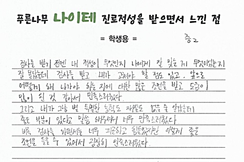 나이테 진로상담 후기(서울) 학생