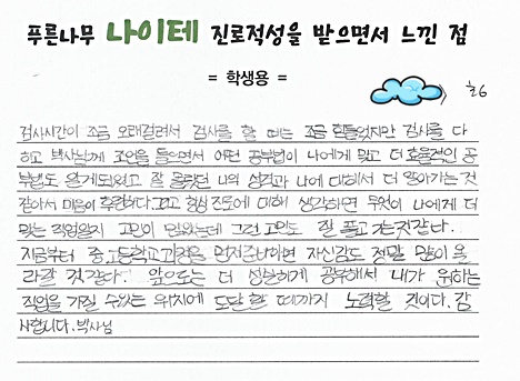 같아서 마음이 후련하다. 그리고 항상 진로에 대해 생각하면 무엇이 나에게