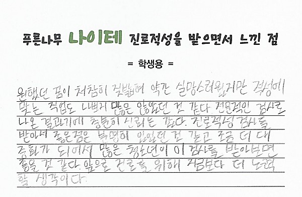 나온 결과기에 충분히 신뢰는 갔다. 진로적성검사를