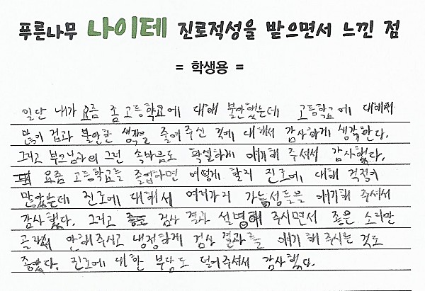 나이테 진로상담 후기(서울) 학생