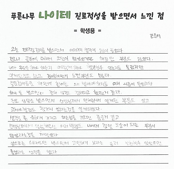 진로나 공부에 대해서 고민이 많았었지만 해결된 부분도 많았다.