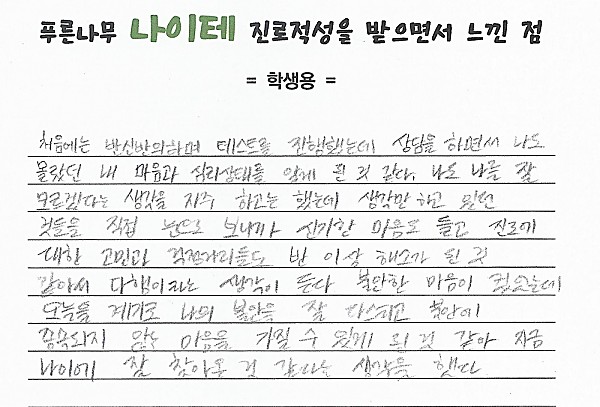 나이테 진로상담 후기(서울) 학생