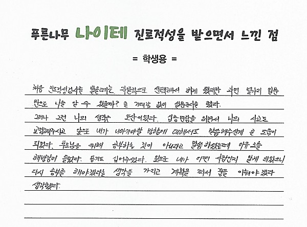 처음 진로적성검사를 받을 때는 자발적으로 선택해서 하게 됐지만 과연 몇가지 질문