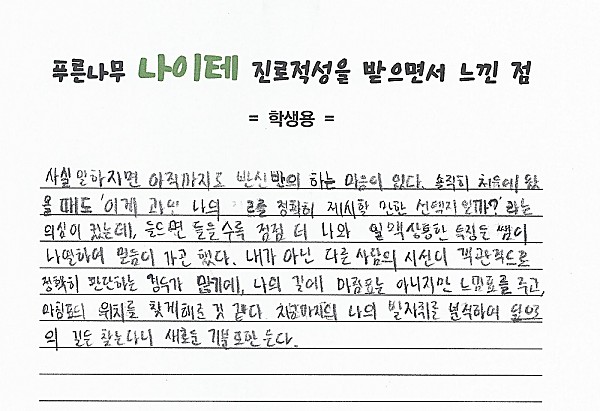 나이테 진로상담 후기(부천) 학생