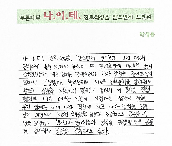 정확하게 분석되어져 놀랐다. 또 장래희망에 대해서 많이