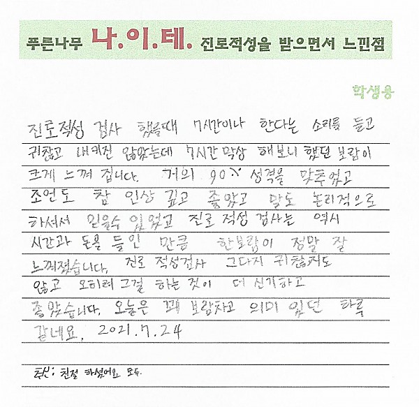 하셔서 믿을 수 있었고 진로적성 검사는 역시