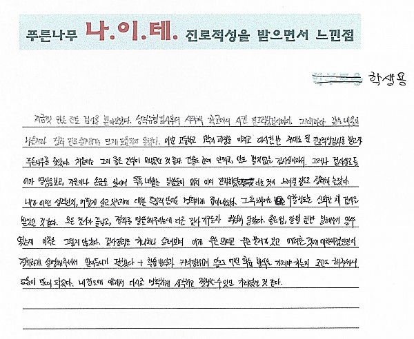 나온거라 정작 진로설계에는 크게 도움되지 못했다. 이번 고등학교 1학기 과정을 마치고 다시한번 제대로 된 진로적성 검사를 받고자