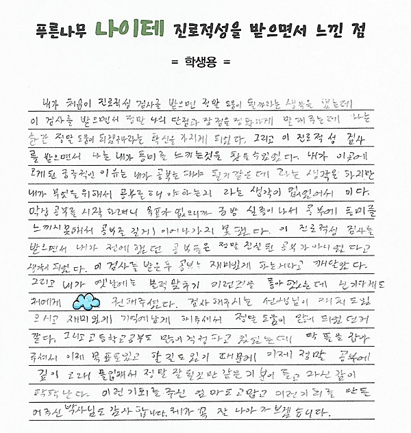 생각이 되었다. 이 검사를 받은 후 공부는 재미있게 하는 거라고 깨달았다.