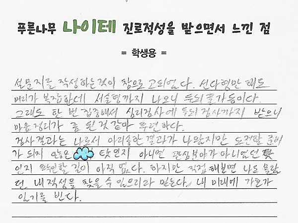 던 내 적성을 찾을 수 있으리라 믿는다. 내 미래에 가호가
