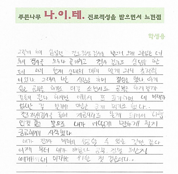 진로적성검사를 통해 지금이라도 알게 되어서 다행