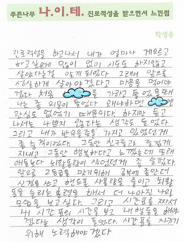 앞으로 2등급을 맞기 위해 공부에 좀만 더