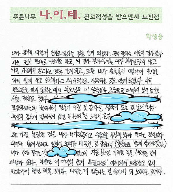 아닐까 싶다. 하지만 내 미래의 삶이 바뀐다는데 이제와서 트집잡고 싶지