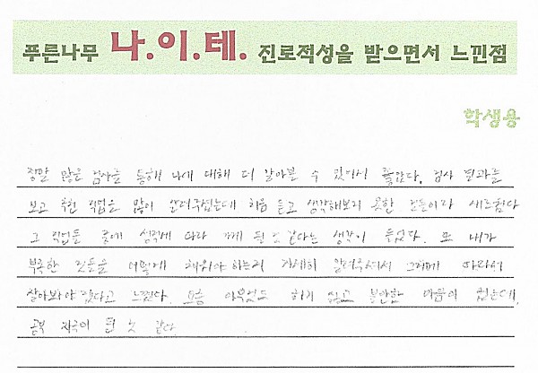 보고 추천 직업을 많이 알려주셨는데 처음 듣고 생각해보지 못한 것들이라 새로웠다.