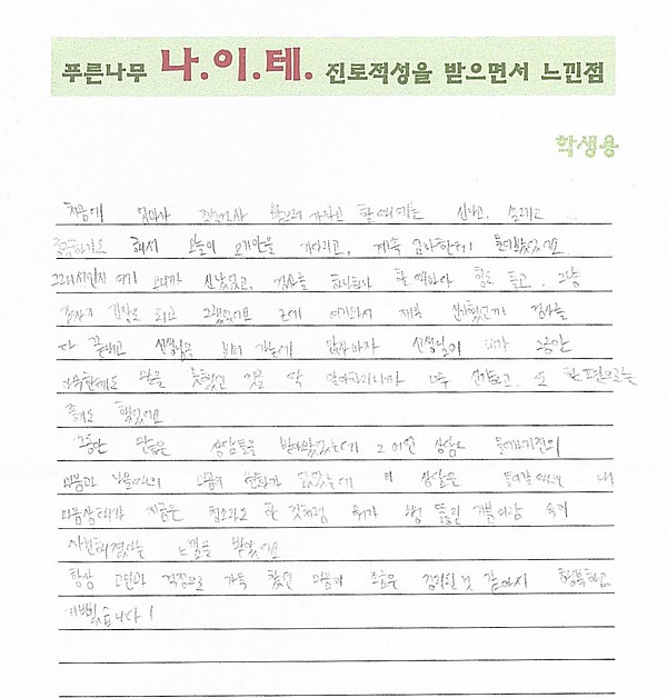 나이테 진로상담 후기(서울) 학생