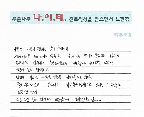 앞으로 달라질 아이의 모습을 기대해보고 싶다.