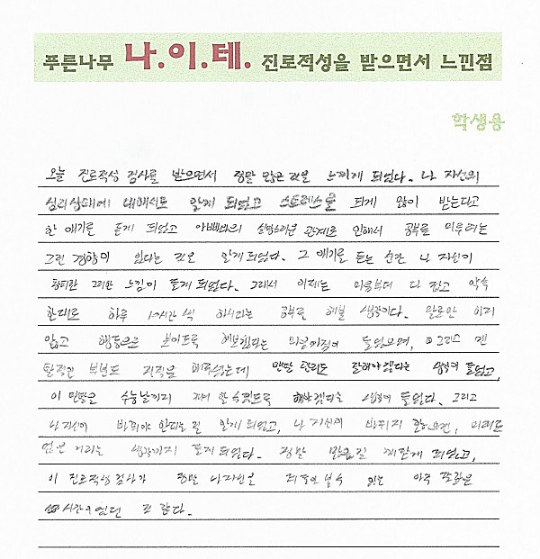 이 진로적성검사가 정말 나 자신을 되돌아볼 수 있는 아주 뜻 깊은