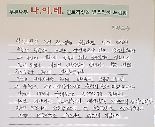 알게 되었고 자녀의 진로적성에 관해서도 많은 정보를
