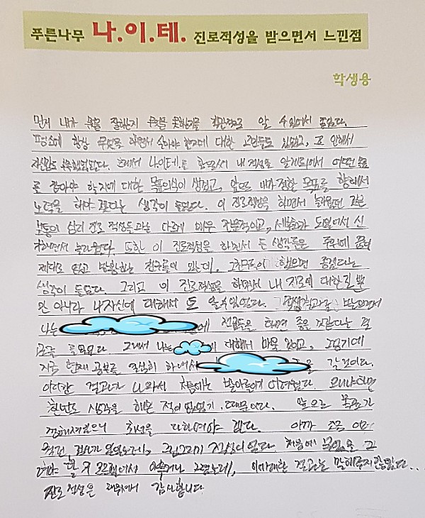 자신감도 부족했었었다. 그래서 나이테를 함으로써 내 적성을 알게되어서 어떤 목표