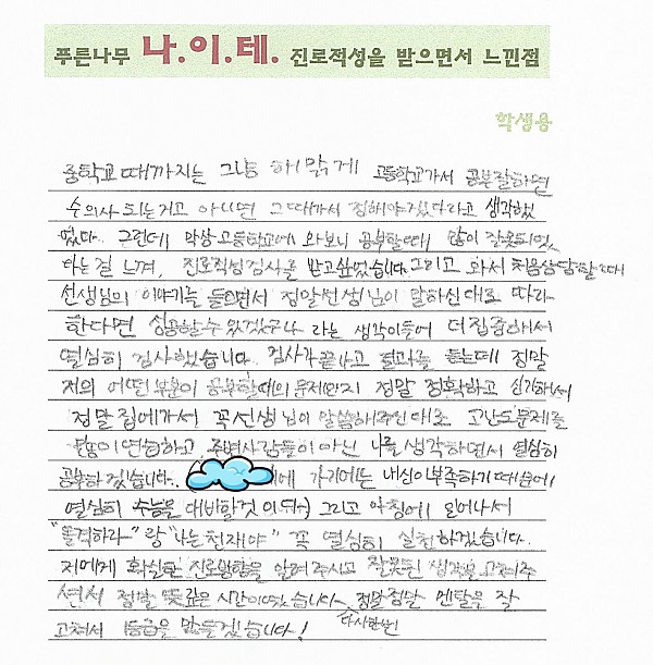 나이테 진로상담 후기(화성시, 고1) 학생