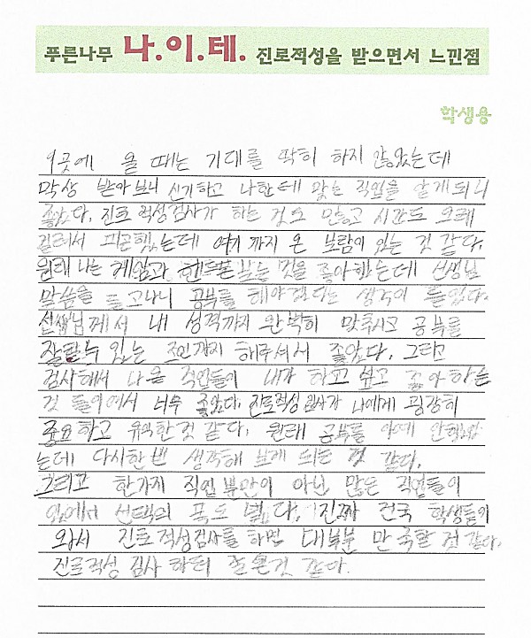 와서 진로적성검사를 하면 대부분 만족할 것 같다.