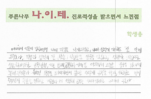 여러가지 질문에 답하면서 나의 적성을 알게되었고, 나의 성격에 대해서도 알게