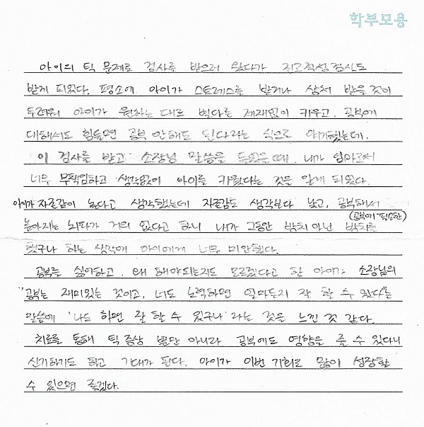치료를 통해 틱 증상 뿐만 아니라 공부에도 영향을 줄 수 있다니