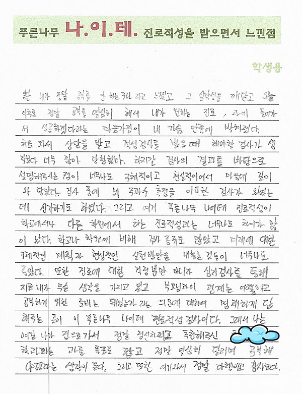 해주는 곳이 이 푸른나무 나이테 진로적성 검사이다. 그래서 나는