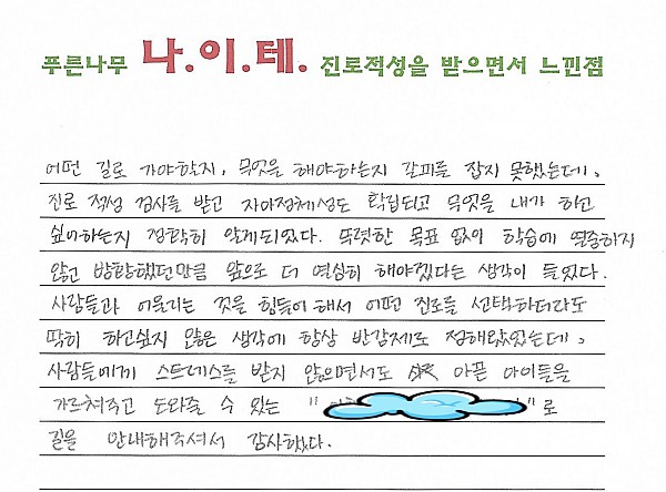 나이테 진로상담 후기(경남 창원, 고2) 학생