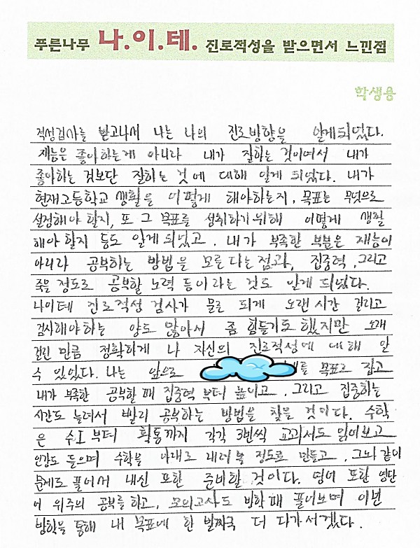 걸린 만큼 정확하게 나 자신의 진로적성에 대해 알