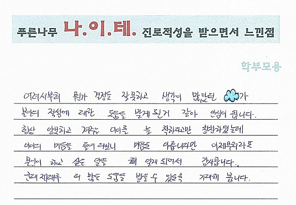 나이테 진로상담 후기(대학생-입대 중, 인천) 부모님