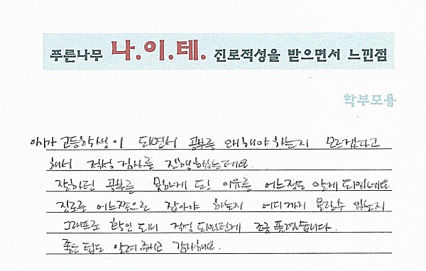 나이테 진로상담 후기(충남 아산, 고1) 부모님