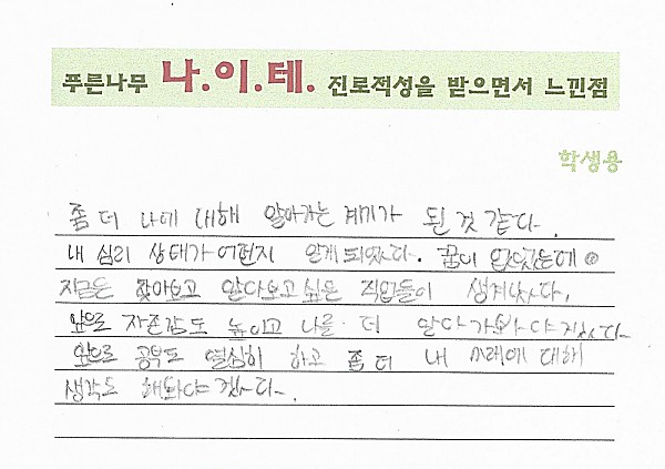 앞으로 공부도 열심히 하고 좀 더 내 미래에 대해