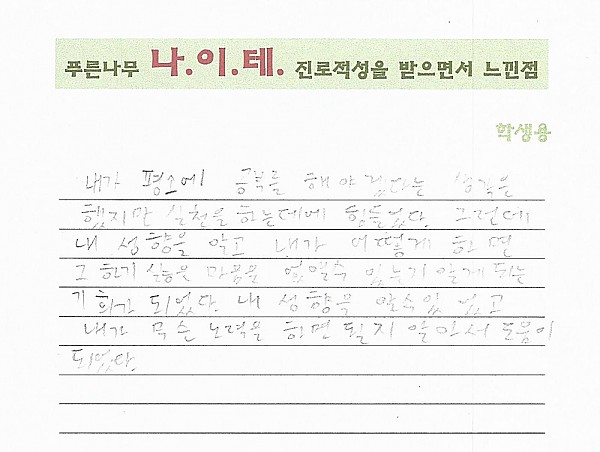 나이테 진로상담 후기(창원, 고2) 학생