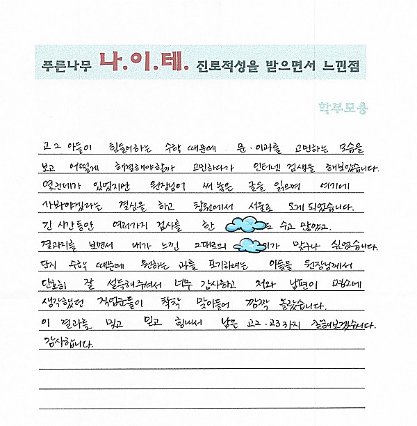 나이테 진로상담 후기(창원, 고2) 학부모