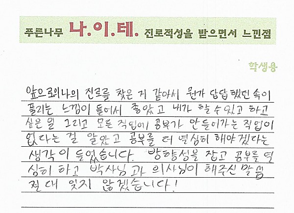 앞으로의 나의 진로를 찾은 거 같아서 뭔가 답답했던 속이