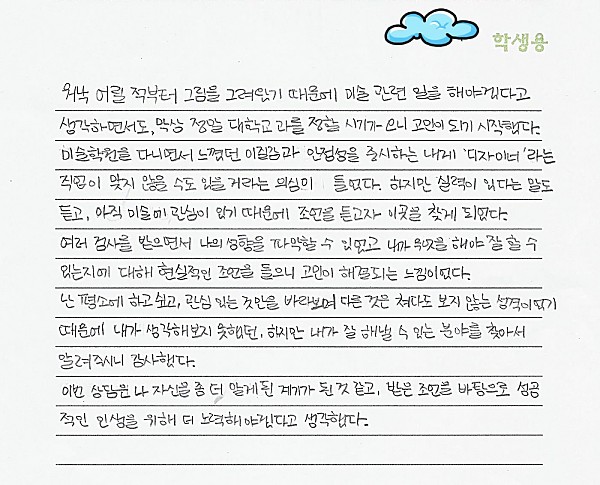 미술학원을 다니면서 느꼈던 이질감과 안정성을 중시하는 내게 '디자이너'라는