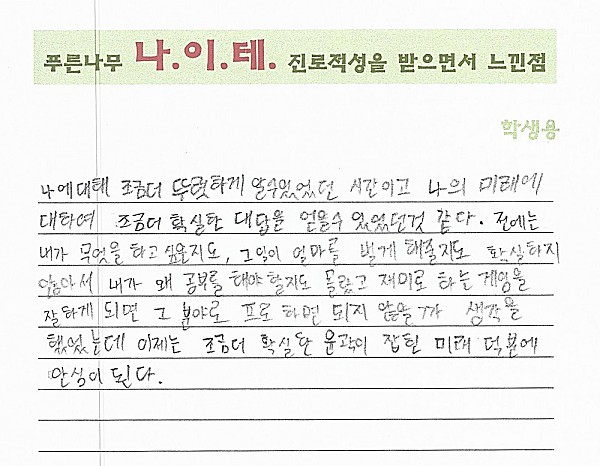 나이테 진로상담 후기(서초, 고1) 학생