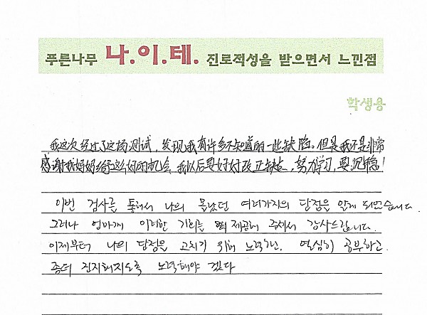 나이테 진로상담 후기(중국, 중2) 학생