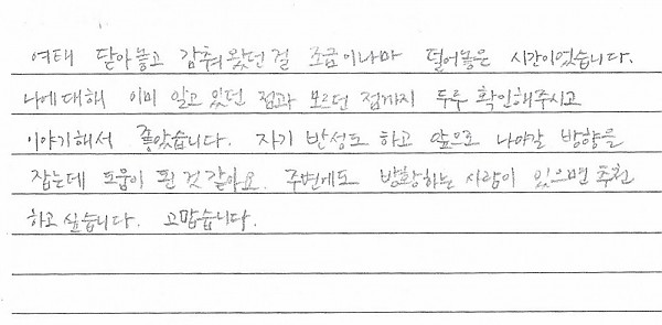 이야기해서 좋았습니다. 자기 반성도 하고 앞으로 나아갈 방향을