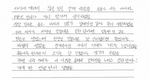 상담 결과를 듣고 아이의 진로가 정해진 것 같아 속이 시원하였음