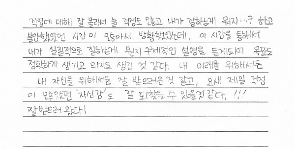 내가 실질적으로 잘하는게 뭔지 구체적인 설명을 듣게되어 목표도