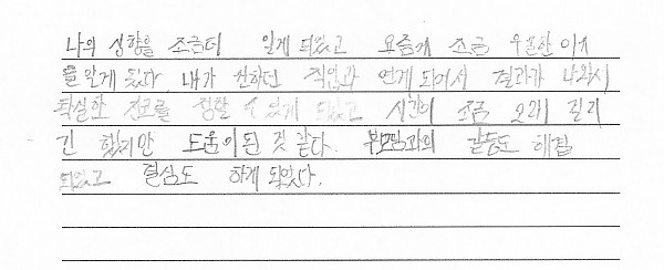 나이테 진로상담 후기(부산, 고) 페이지 정보 작성자 관리자 작성일19-01-07 11:43 조회6,127회 댓글0건 이전글 다음글 목록 본문 나의 상황을 조금 더 알게 되었고 요즘에 조금 우울한 이유 를 알게 됐다. 내가 원하던 직업과 연계되어서 결과가 나와서 확실한 진로를 정할 수 있게 됐고 시간이 조금 오래 걸리 긴 했지만 도움이 된 것 같다. 부모님과의 갈등도 해결 되었고 결심도 하게 되었다. 댓글목록 등록된 댓글이 없습니다. 이전글 다음글 목록
