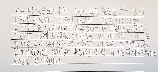나의 인생을 다시 설계를 할 수 있어서 기분이 좋았다.