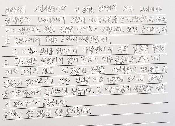 정말 유익한 시간이었습니다. 이 검사를 받으면서 제가 나아가야