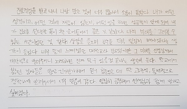 있는 시간이었던 것 같다. 상담을 들으며 공부를 더욱 열심히 해야겠다는 생
