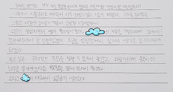 노력을 쏟아야겠다는 방향을 잡게 되어서 좋았다.