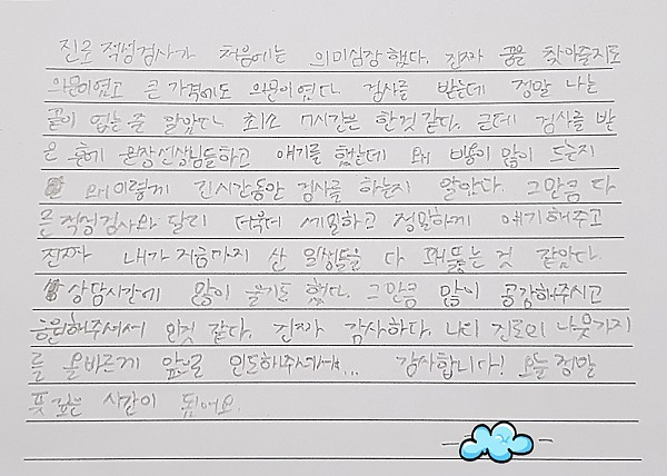 상담시간에 많이 울기도 했다. 그만큼 많이 공감해주시고