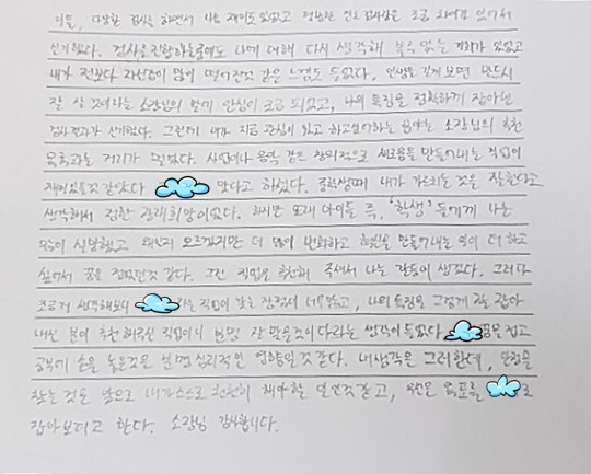 잘 살 것이라는 소장님의 말에 안심이 조금 되었고, 나의 특징을 정확하게 잡아낸