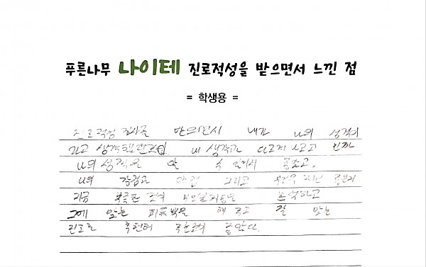 진로적성검사를 받으면서 내가 나의 성격이라고 생각했던 것이 내 생각과 다르게 나오고 진짜 나의 성격을 알 수 있어서 좋았고, 나의 강점과 약점, 그리고 무엇을 하면 좋은지 지금 부족한 것이 무엇인지 등을 분석하고 그에 맞는 피드백을 해주고 잘 맞는 진로를 추천해주는 것이 좋았다.