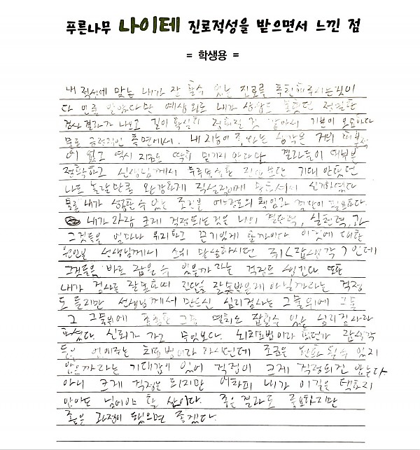 나이테진로상담후기(고양) 학생